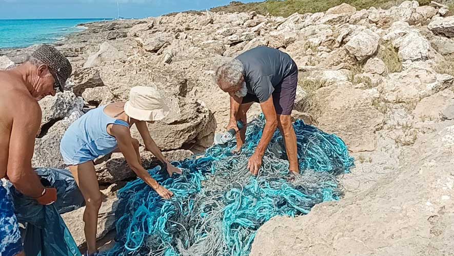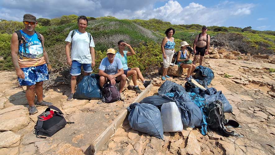 A Son Serra de Marina recollírem grans quantitas de plàstics i deixalles, i al far de Ses Salines a més denunciàrem la massificació turística que posa en perill paratges verges: embarcacions de motor i catamarans turístics molt a prop de la costa, motos d’aigua a gran velocitat i intensa afluència de visitants. Al Port de Pollença, amb l’Ajuntament, retiràrem els morts de les embarcacions i recuperàrem el fons marí, defensant la platja de la degradació constant.